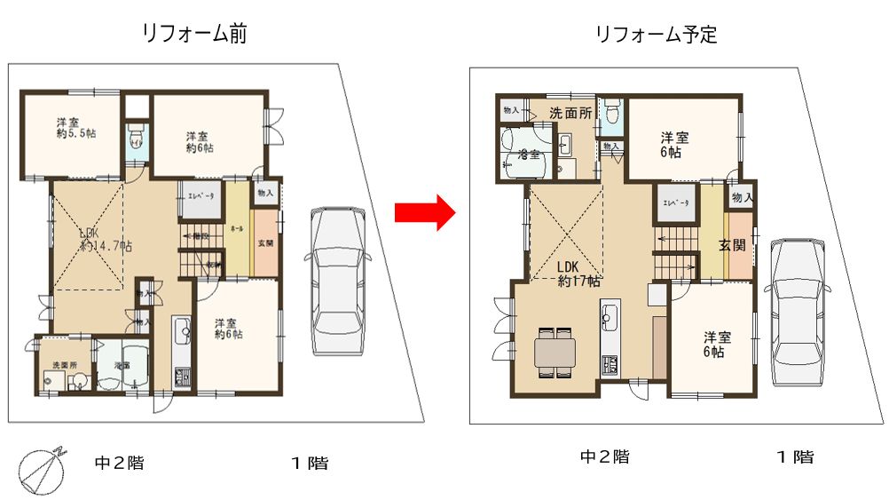 リフォーム案は、概略図になりますので、実際の工事内容と異なる場合がございます。