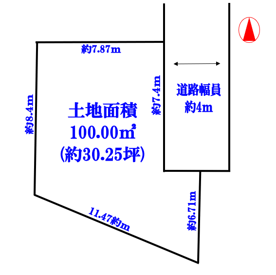 | 土地面積 | 公簿:100㎡(約30.25坪) |