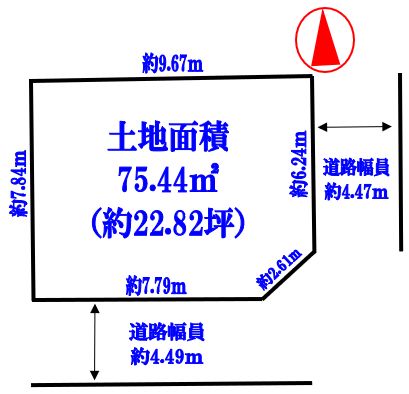 ※仮測量面積 (現況測量図) 75.44㎡(約22.82坪)